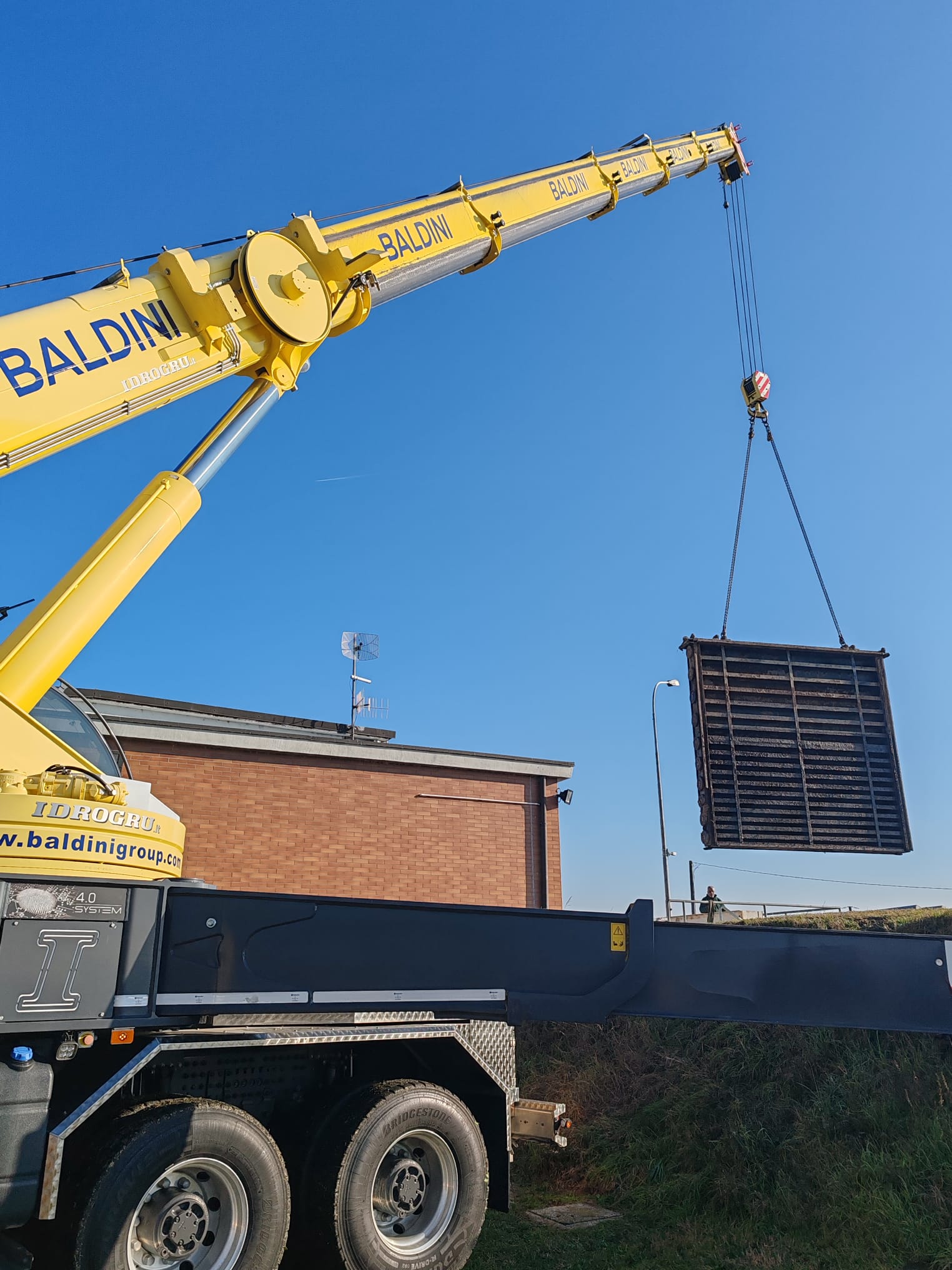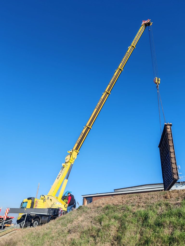 Estrazione, carico e trasporto di una paratoia da Pieve di Cento